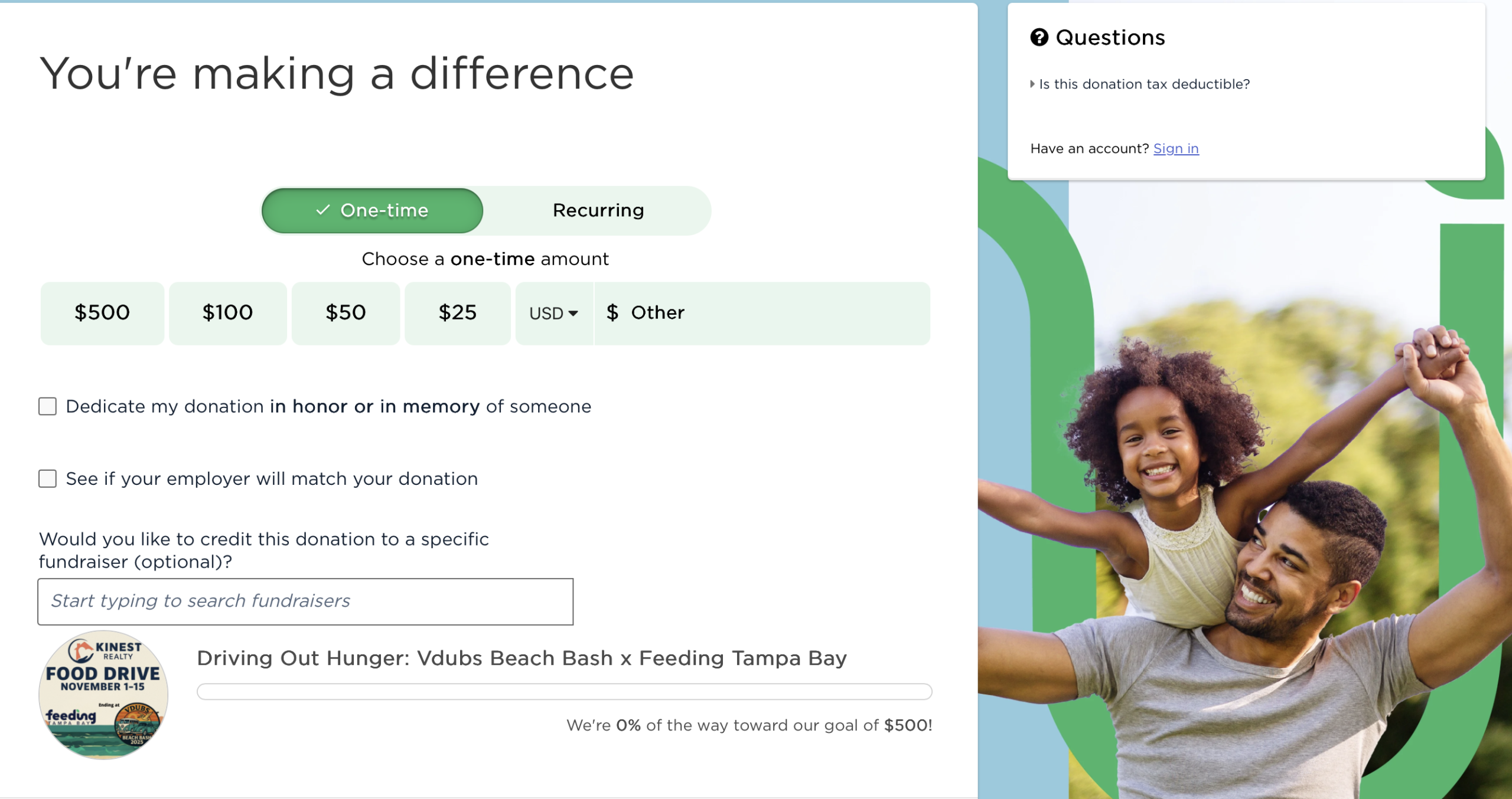 Support our mission by making a donation to our team at https://donate.feedingtampabay.org/team/784036. The process is fast, easy, and secure, and every contribution goes directly to this incredible cause.